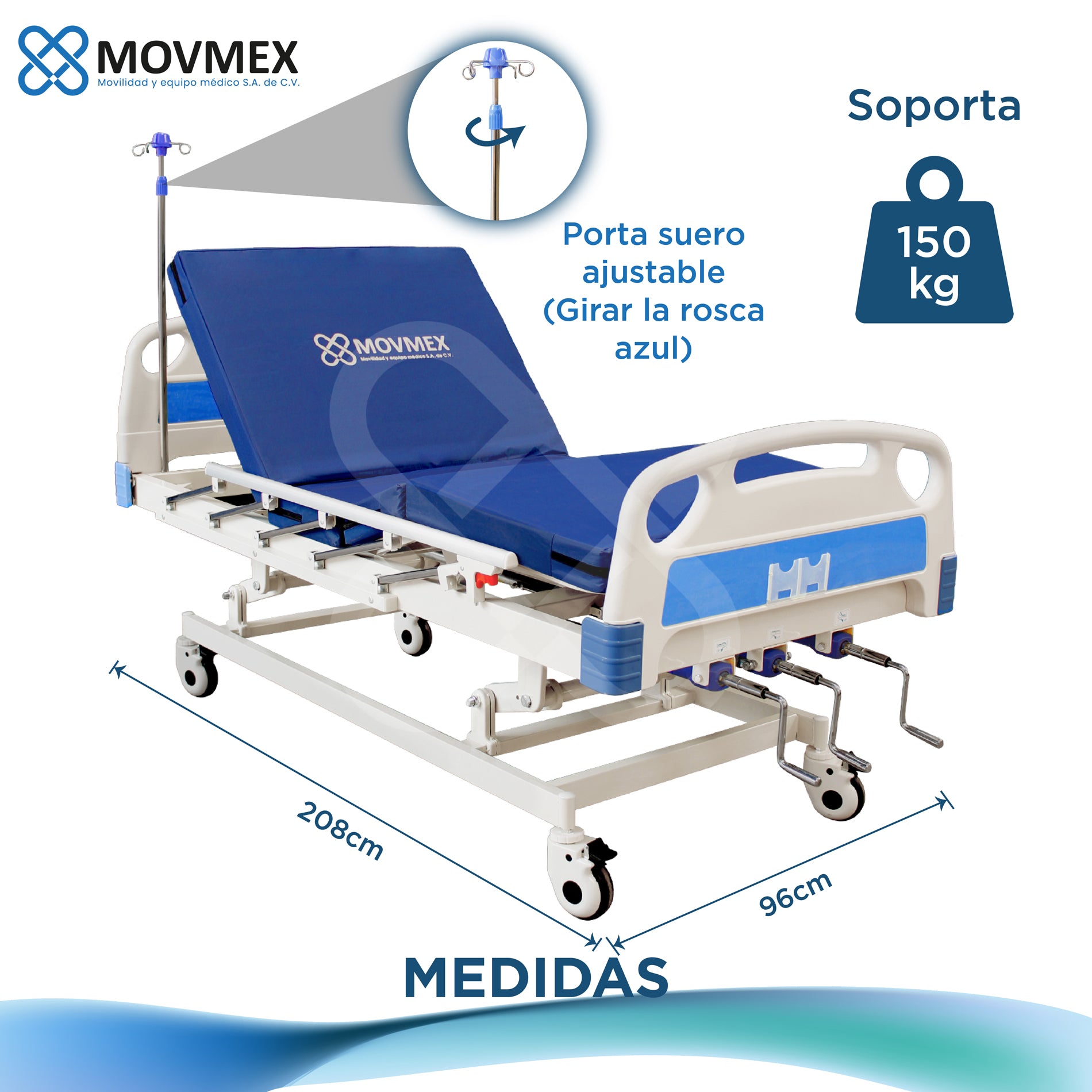 Cama Manual 3 Posiciones Ajuste de Altura + Accesorios Galeno Movmex
